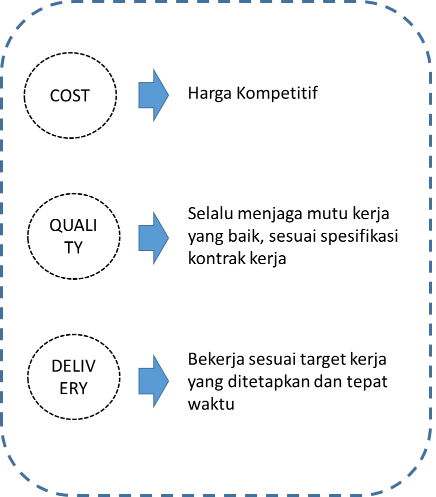 Kami berfokus pada mutu untuk mencapai persyaratan-persyaratan pelanggan yang disetujui dan memastikan peningkatan pelanggan dengan mencapai sasaran mutu.